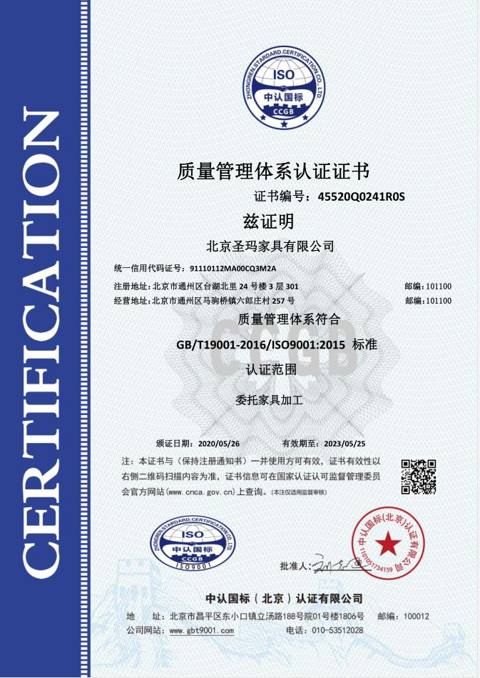 北京圣瑪家具有限公司是以設(shè)計研發(fā)、生產(chǎn)、銷售、服務(wù)為一體的專業(yè)化辦公家具制 造企業(yè);主要經(jīng)營辦公家具、校園家具、實驗室家具、酒店套房、全屋定制類等家具。 公司成立于 2017 年,生產(chǎn)基地位于天津市蘆臺經(jīng)濟開發(fā)區(qū)華澳盛世家具有限公司院 內(nèi),占地面積約 10000 平米,擁有員工 100 人左右,其中高級技術(shù)人員達 15%以上。 公司采用了南興、先達系列等先進生產(chǎn)設(shè)備,建立專業(yè)流水線,具備先進的生產(chǎn)及加 工能力。公司設(shè)有專業(yè)的產(chǎn)品設(shè)計部、運營部、質(zhì)檢部等,提供專業(yè)的 CAD 平面圖、立面 圖級效果設(shè)計圖紙。 使用優(yōu)質(zhì)的進口原材料及配件;嚴把進貨渠道,所用材料符合國家環(huán)保標準要求。款 式上依據(jù)人體工程學原理,追求多樣化的設(shè)計風格。按照 “ISO900/ISO14001 族標準” 的 要求,嚴格控制每一個環(huán)節(jié)。 并本著“以質(zhì)量求發(fā)展,向管理要效益,顧客滿意為焦點,持續(xù)改進,共筑偉業(yè)”的 宗旨方